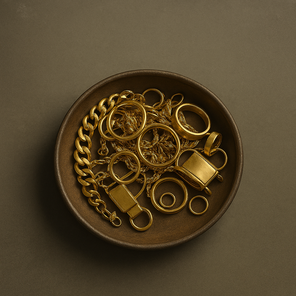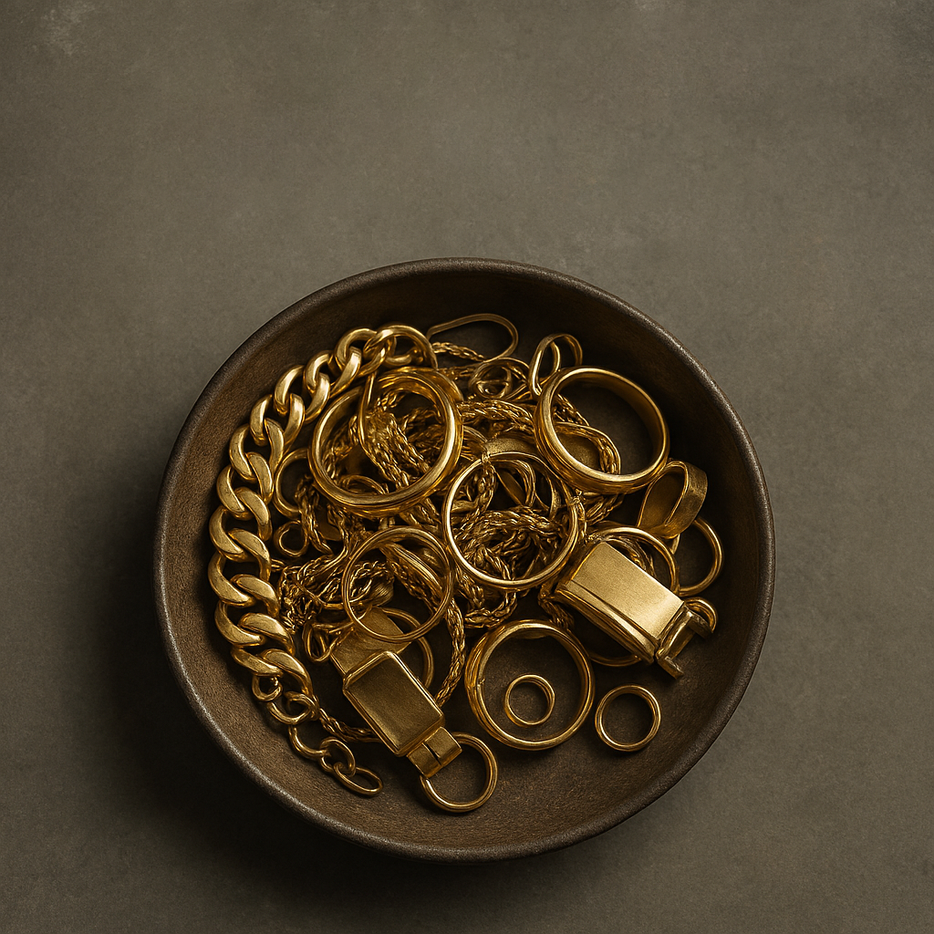 Wir kaufen alle Arten von Altgold an – darunter defekter Schmuck, Bruchgold, Zahngold oder alte Goldreste. Die Bewertung erfolgt transparent und basiert auf dem aktuellen Goldkurs. Sie erhalten ein faires, nachvollziehbares Angebot – schnell und unverbindlich.