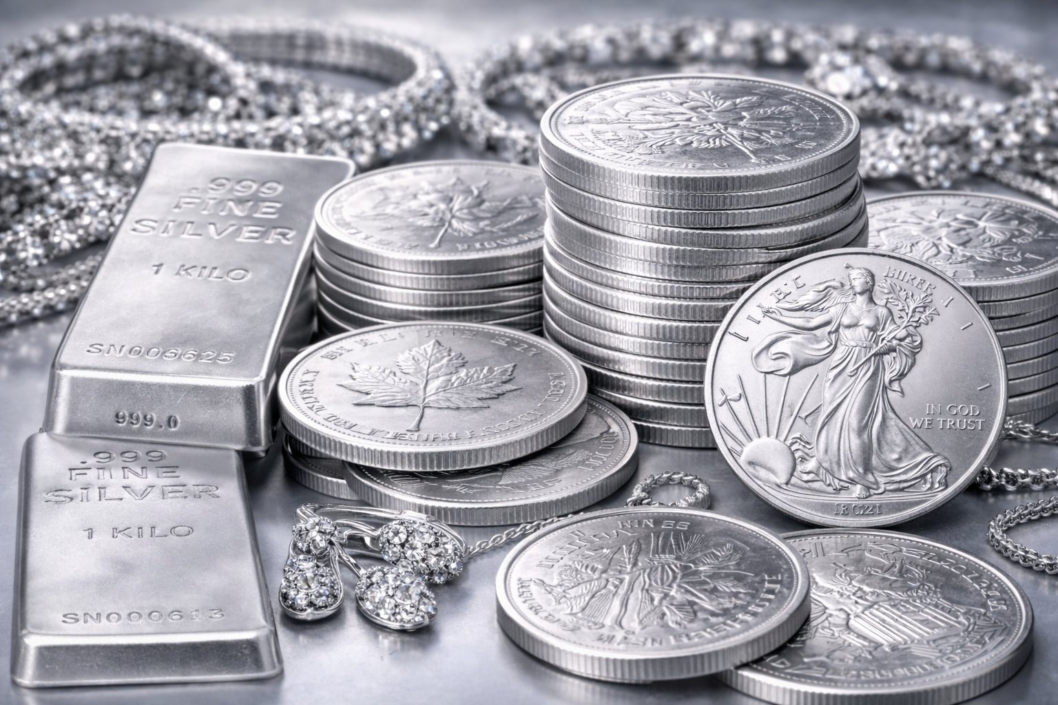 Silbermünzen und Silberbarren